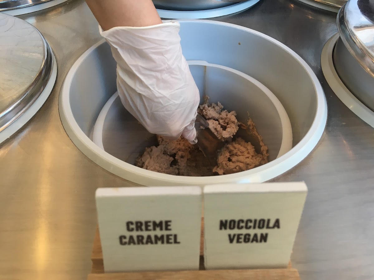 There aren't many flavor options, and to be honest, the best one was the hazelnut. It has a light taste, a good texture, and isn't overly sweet. The place is quite small, so don't expect to find it easily!