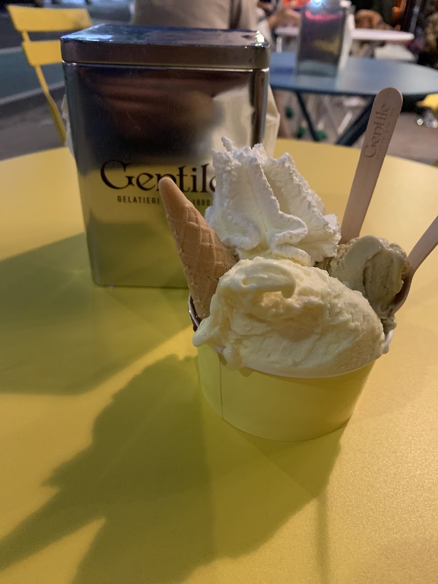 DELISH!! Walked by this place on the way home and its small authentic look drew me in. This gelato was unbelievable and the owner was so friendly! The flavors my group tried were the hazelnut, chocolate cinnamon, and vanilla with lemon zest. All of them were so true to their flavor description, rich, creamy, and the perfect end to the night!