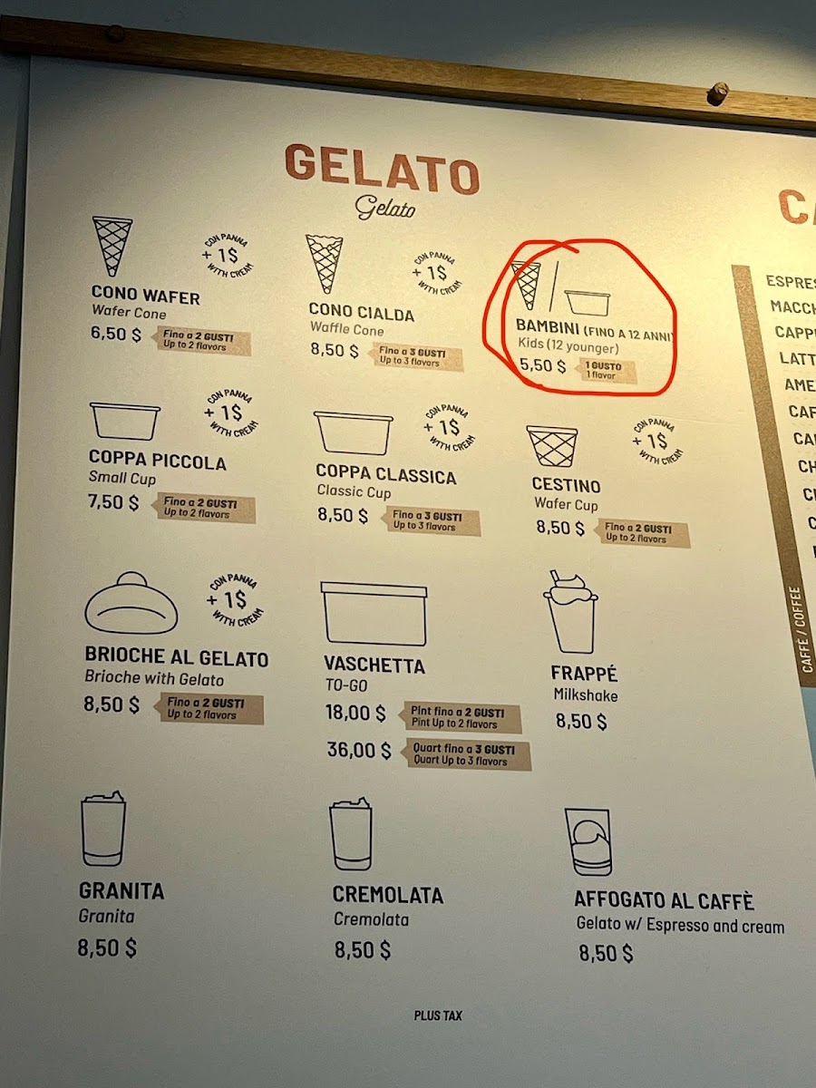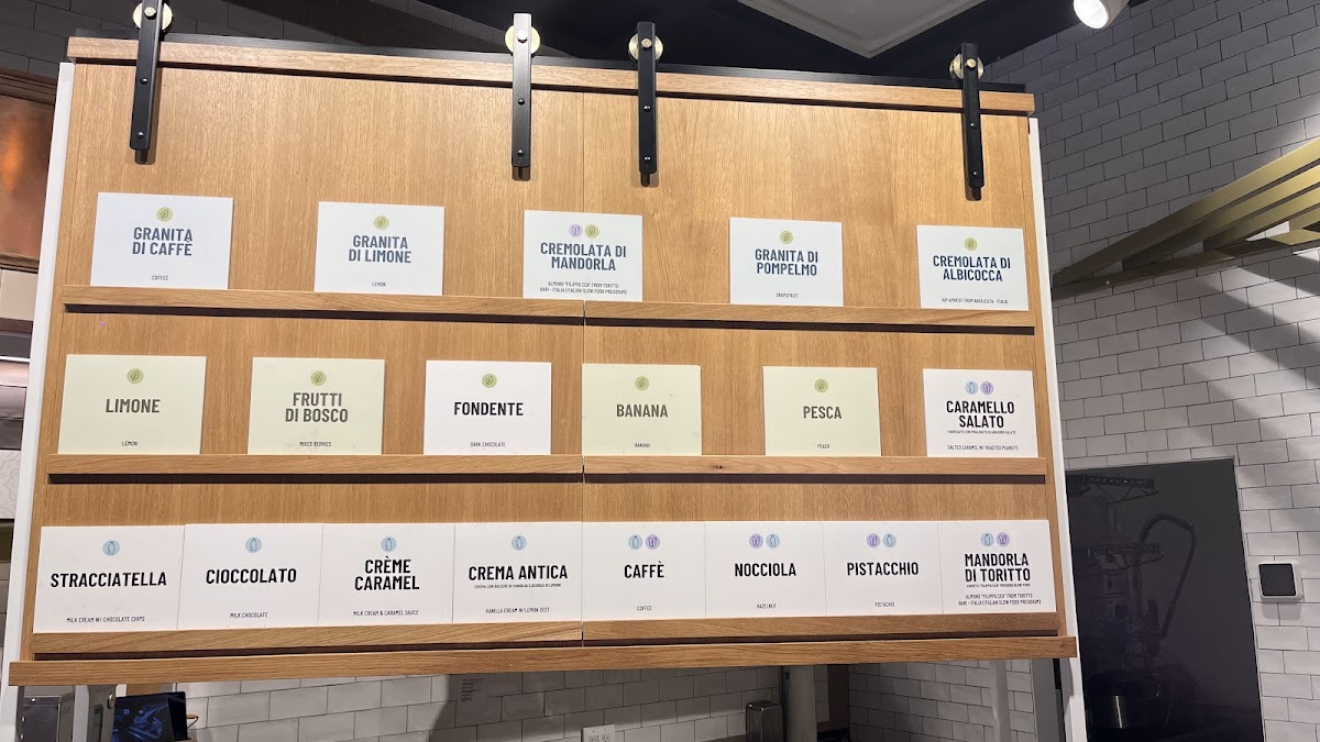 These gelato choices fit seamlessly into the relaxed, intimate vibe of the shop—a cozy stop ideal for a casual sweet moment anytime you’re out exploring the neighborhood or winding down after a meal. Whether you’re seeking a light afternoon treat, a cool pick-me-up on a warm day, or a simple dessert to share, the menu invites you to enjoy familiar, well-balanced flavors crafted with care.